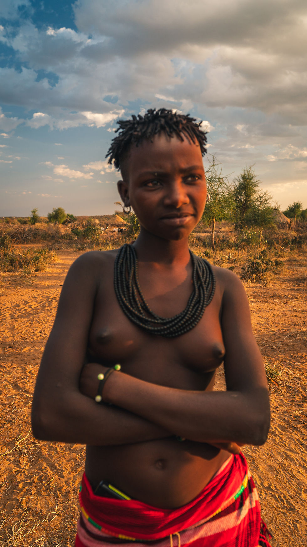 Lei è una ragazza della tribù Arbore, i capelli rasati simboleggia che non è sposata.